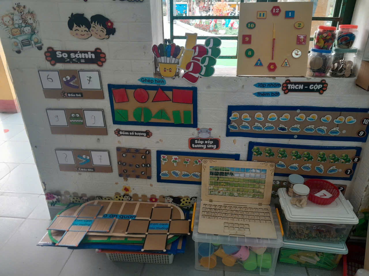 Hội thi là dịp để các giáo viên thể hiện ý tưởng sáng tạo thông qua việc thiết kế môi trường lớp học, các góc chơi, các khu vực chơi ở ngoài lớp tạo hứng thú cho trẻ khi tham gia vào hoạt động vui chơi. Việc tận dụng các nguyên vật liệu sẵn có, thân thiện với môi trường như bìa carton, chai nhựa, vải vụn, tre, nứa… để tạo ra những đồ dùng, đồ chơi phong phú, hấp dẫn để cho trẻ trải nghiệm, phù hợp với lứa tuổi mầm non. Nhiều sản phẩm không chỉ đẹp mắt mà còn mang tính ứng dụng cao, hỗ trợ hiệu quả cho các hoạt động học tập và vui chơi của trẻ như: bộ đồ chơi học chữ, học số, mô hình giao thông, góc phân vai, đồ chơi vận động…